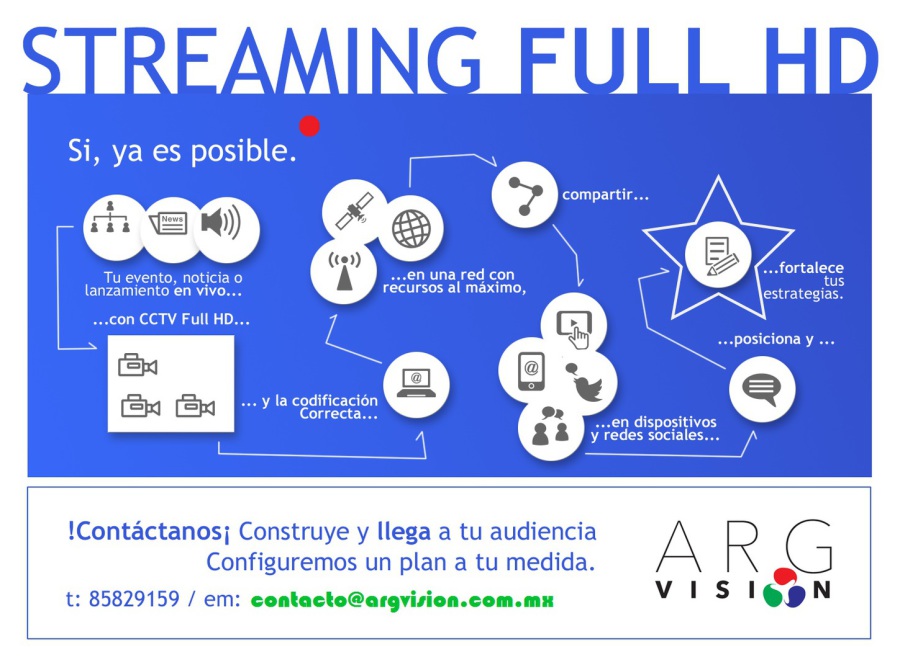 Contamos con equipo especializado para transmisión de video en vivo, utilizamos canales de transmisión como youtube, Facebook, Ustream, LiveStream, y canales privados entre otros